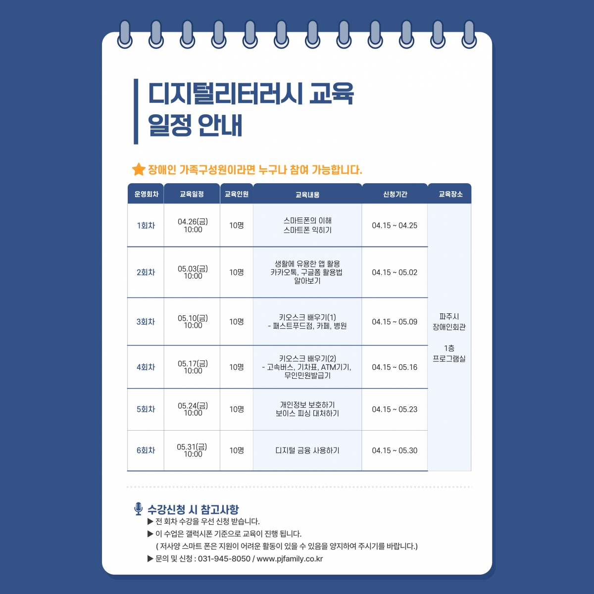 파주시장애인회관(황골로74-13) 1층 프로그램실