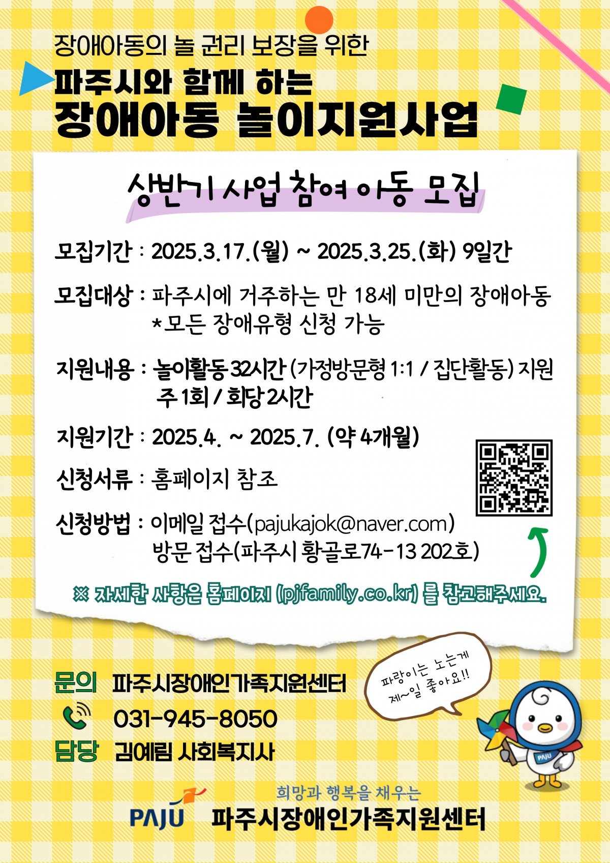 2025 파주시와 함께하는 장애아동놀이지원사업 상반기 참여 아동 모집