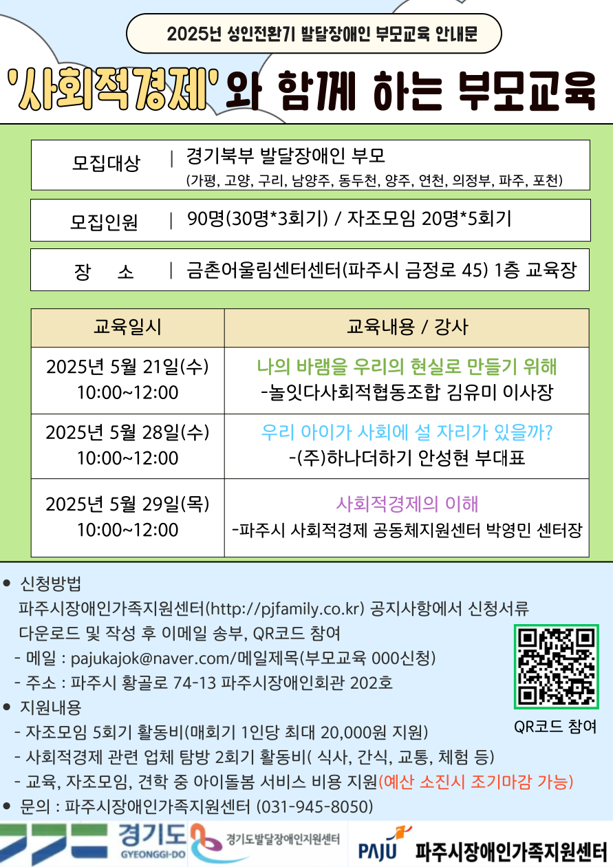 2025년 사회적경제와 함께하는 성인전환기(만 12~18세) 발달장애 부모교육지원사업