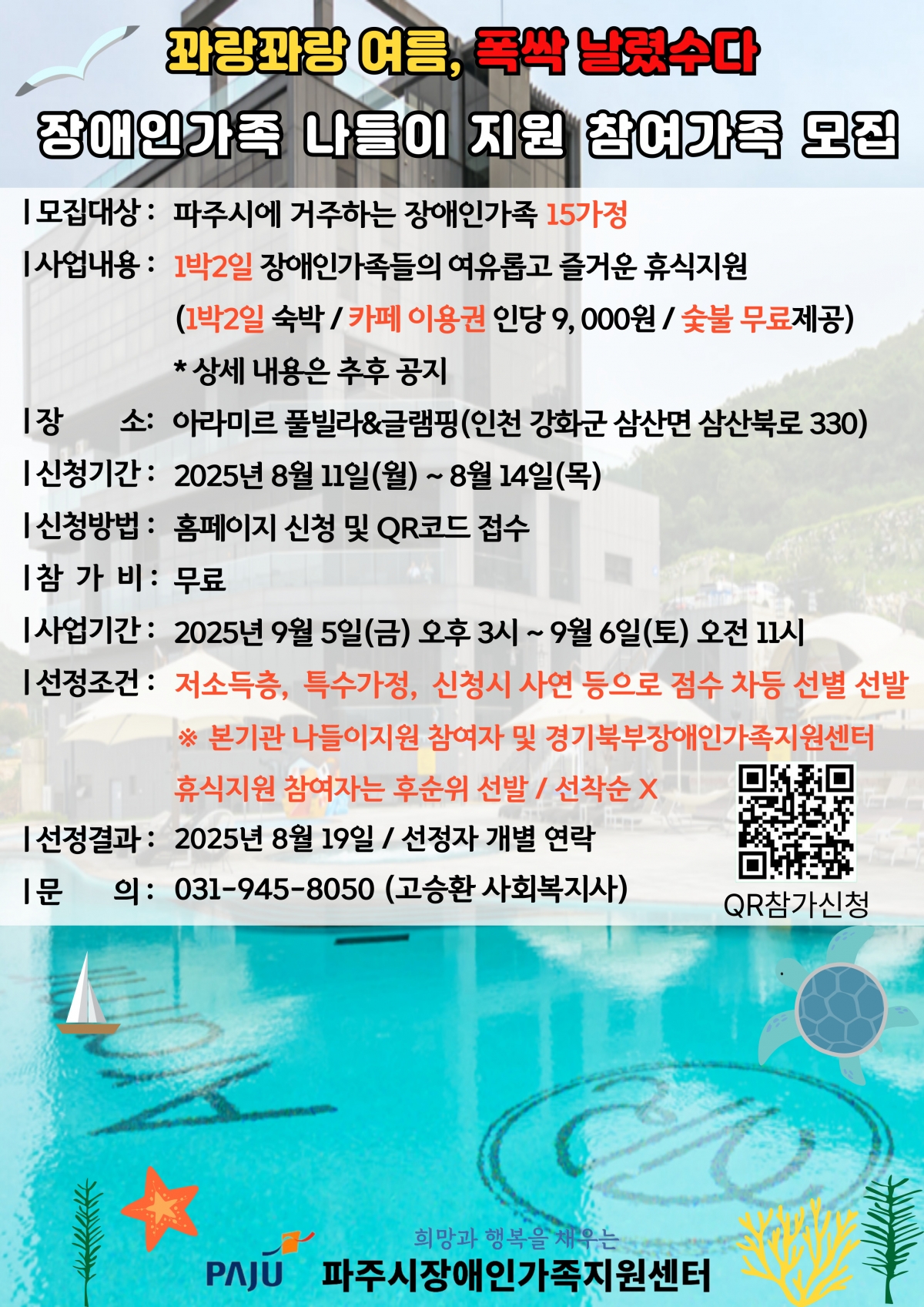 2025년 '꽈랑꽈랑 여름, 폭싹 날렸수다' 장애인가족나들이지원 모집